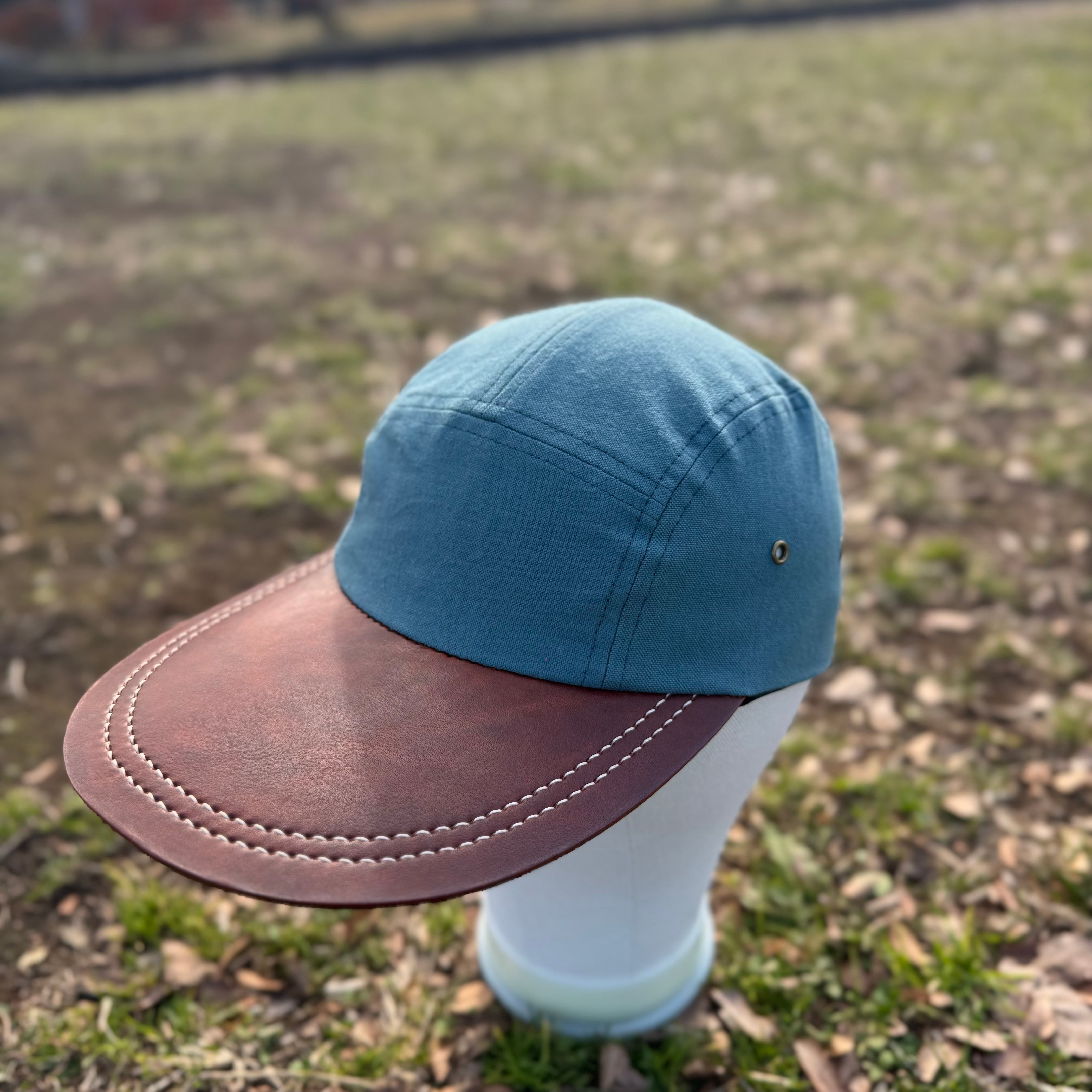 ・鮮やかなターコイズカラーにシックなレザーブリムを合わせたロングビルキャップ ・日本製帆布に栃木レザーを組み合わせたall made in Japanの帽子です ・クラウン、ブリムともに経年変化が楽しめます ・サイズフリー ・1点物